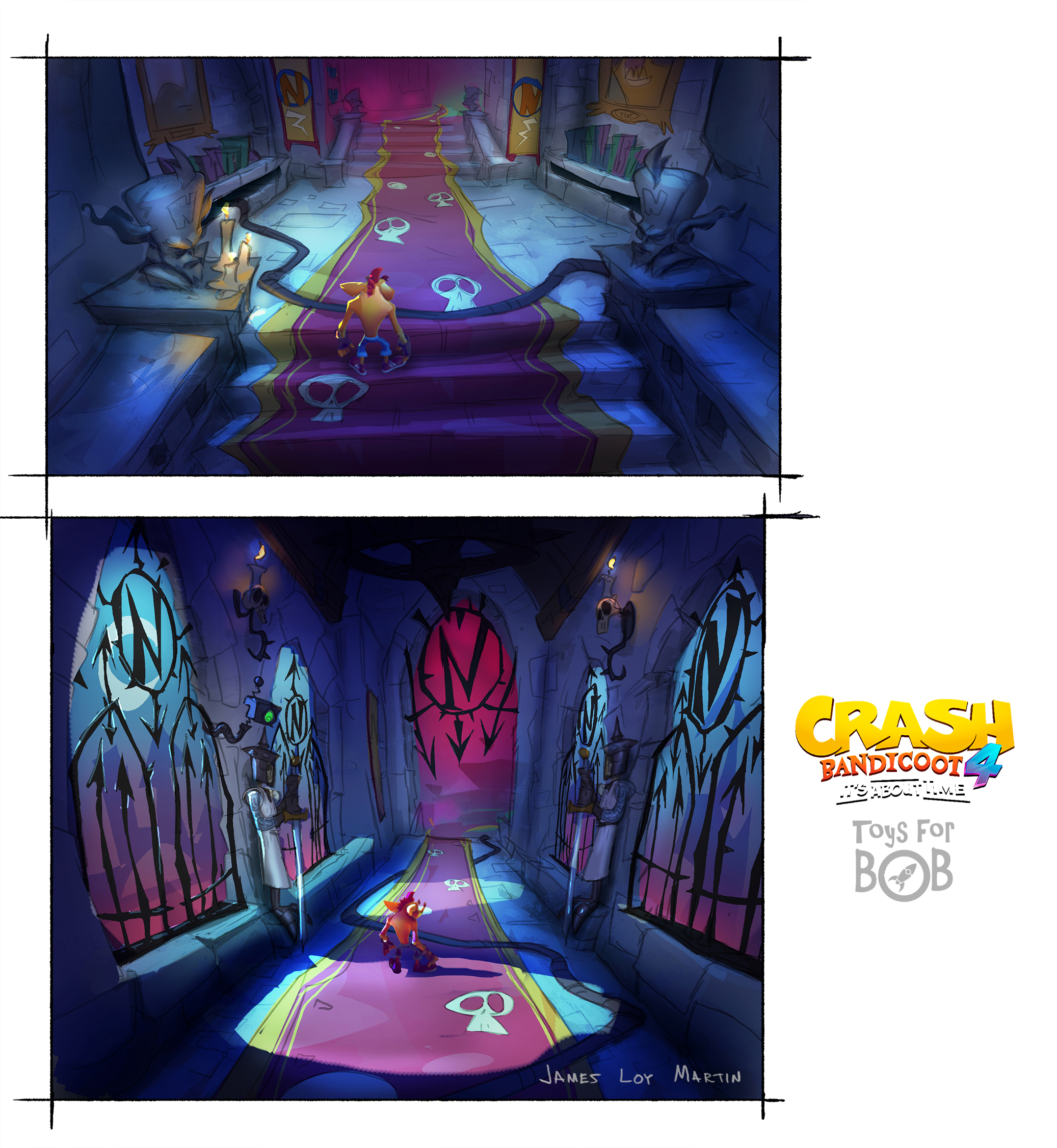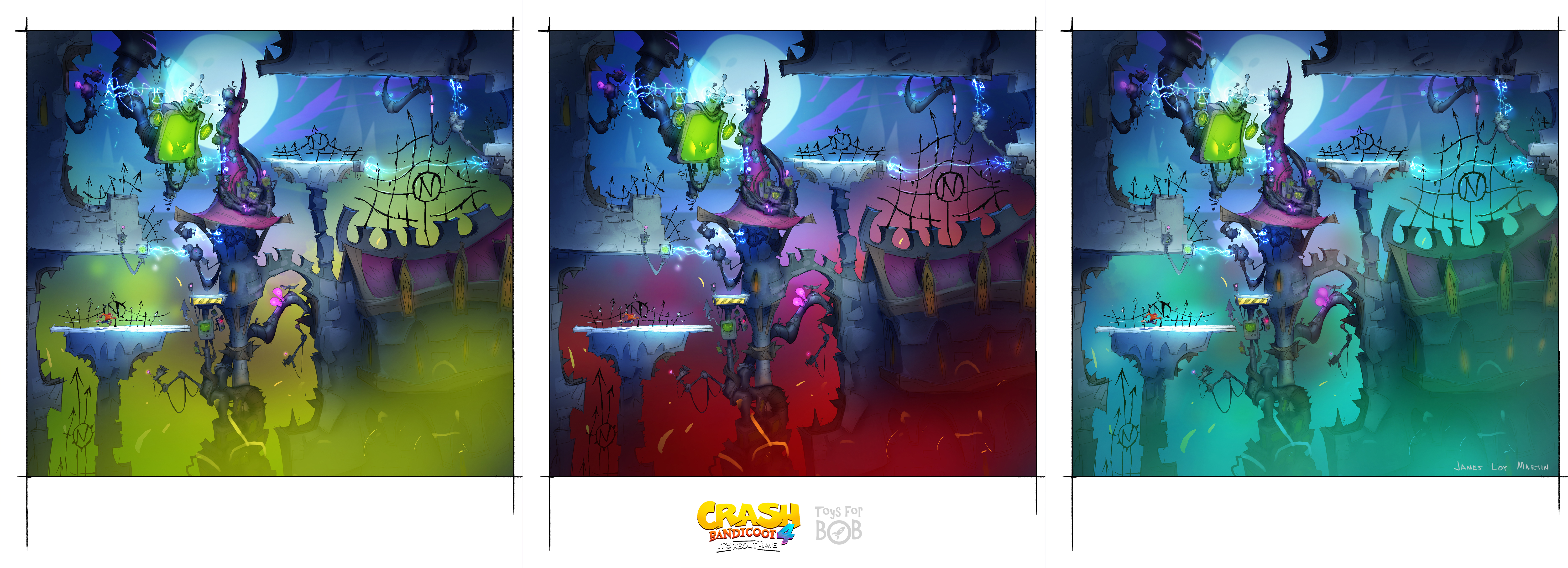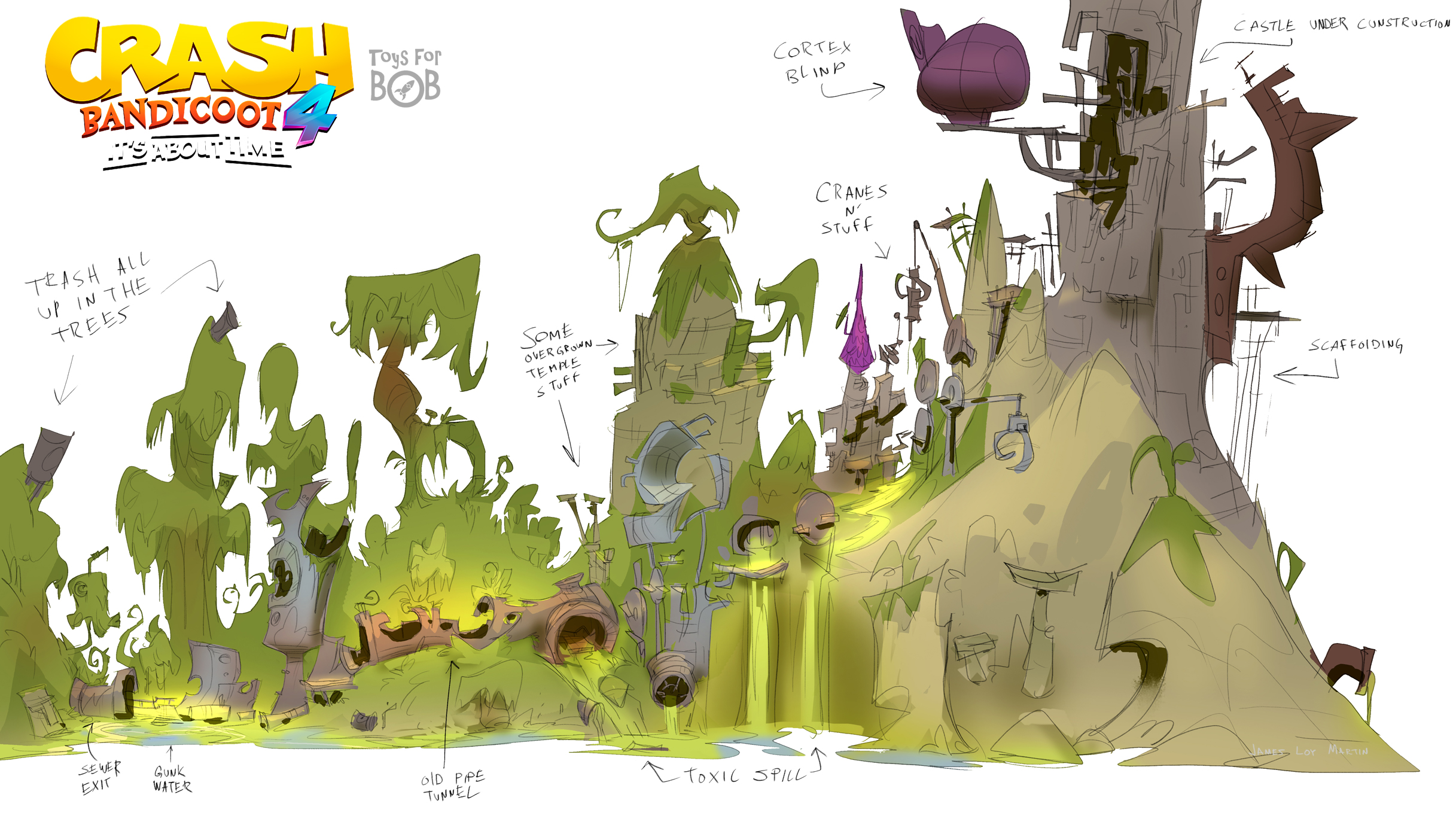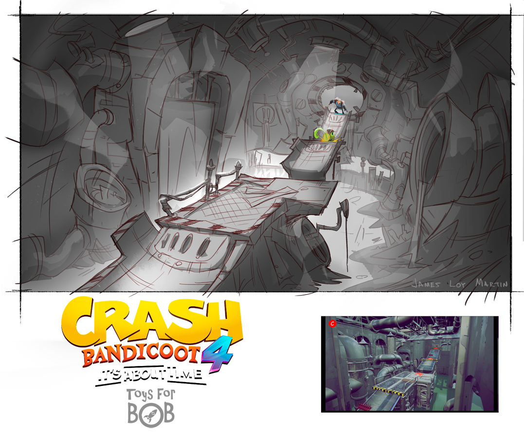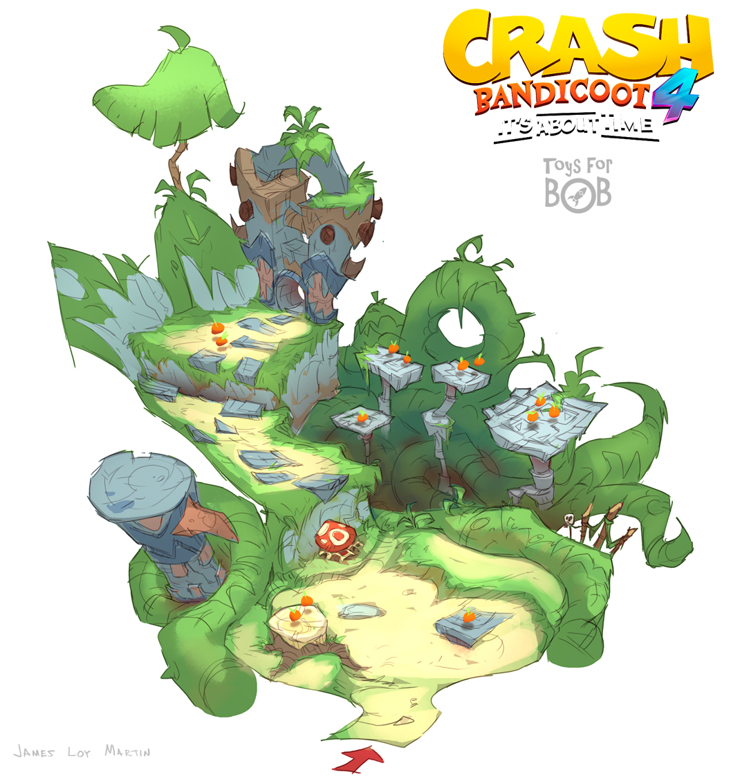 I had the enormous privilege to be a core member of the art team for Crash Bandicoot 4: It’s About Time. I was largely responsible for the the game’s overall wonky style and was able to take part in design across multiple areas including concepting characters, environments, gameplay and entire levels and themes.