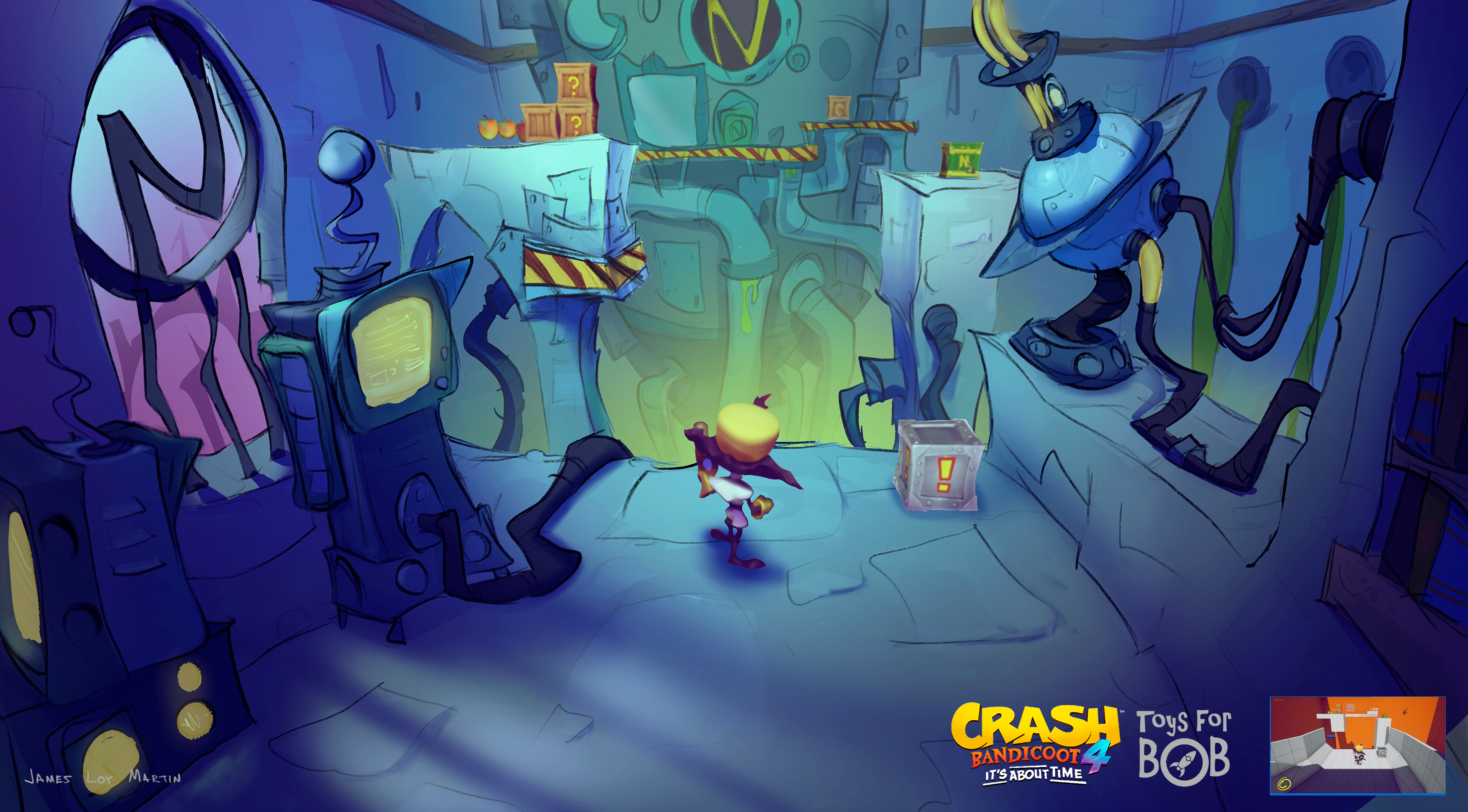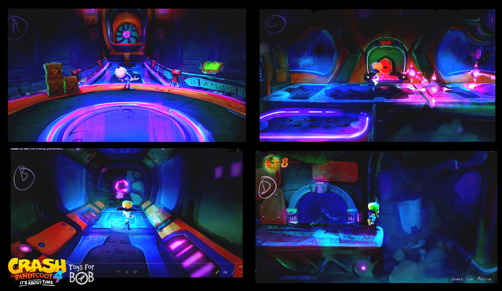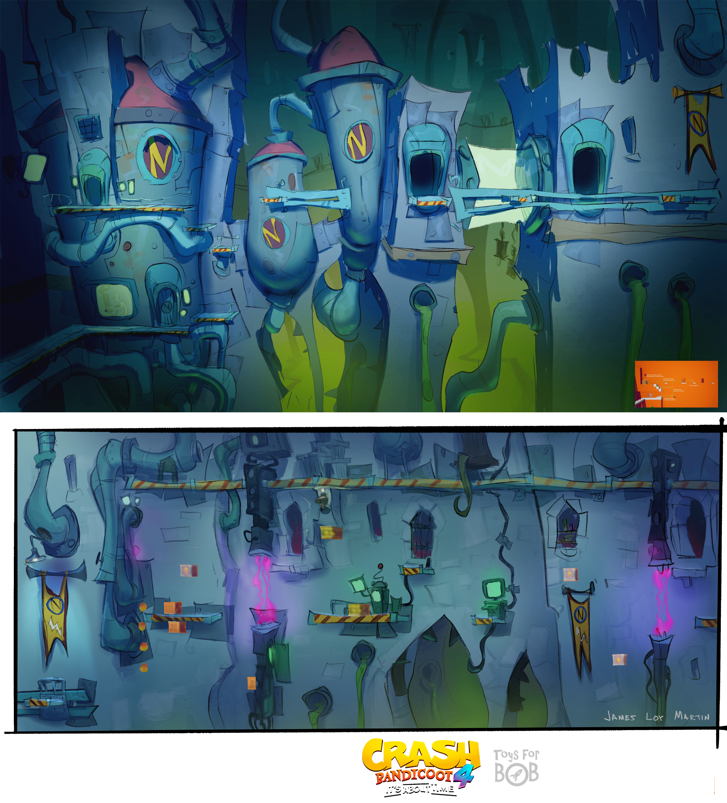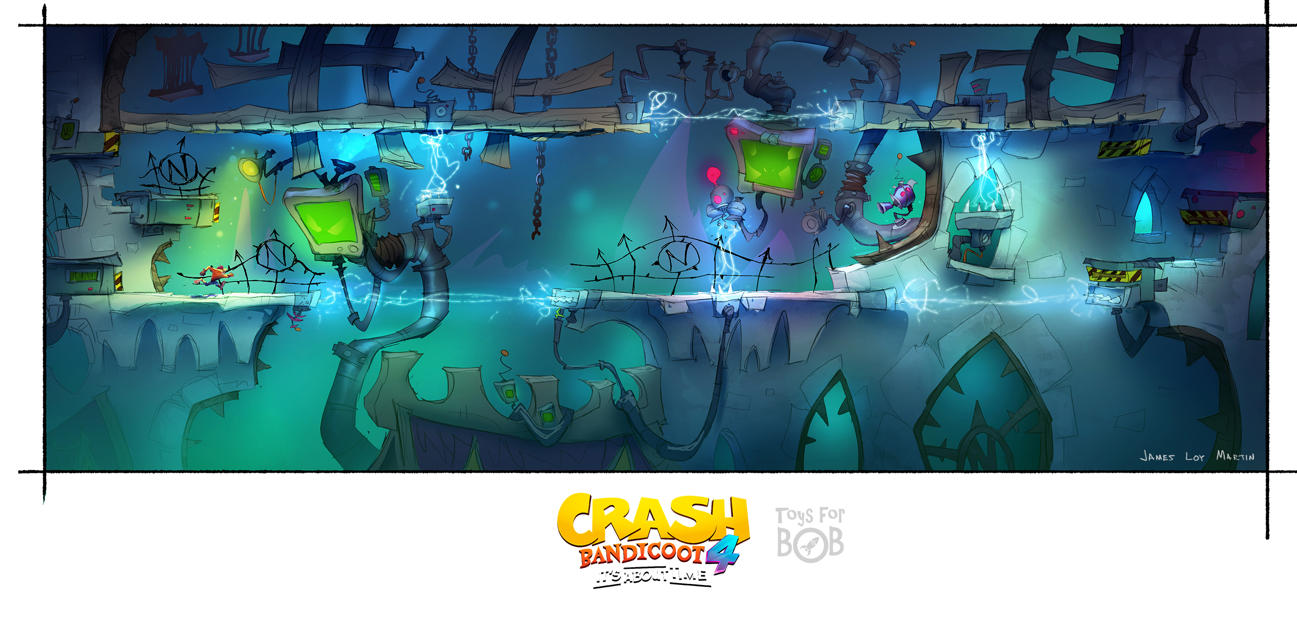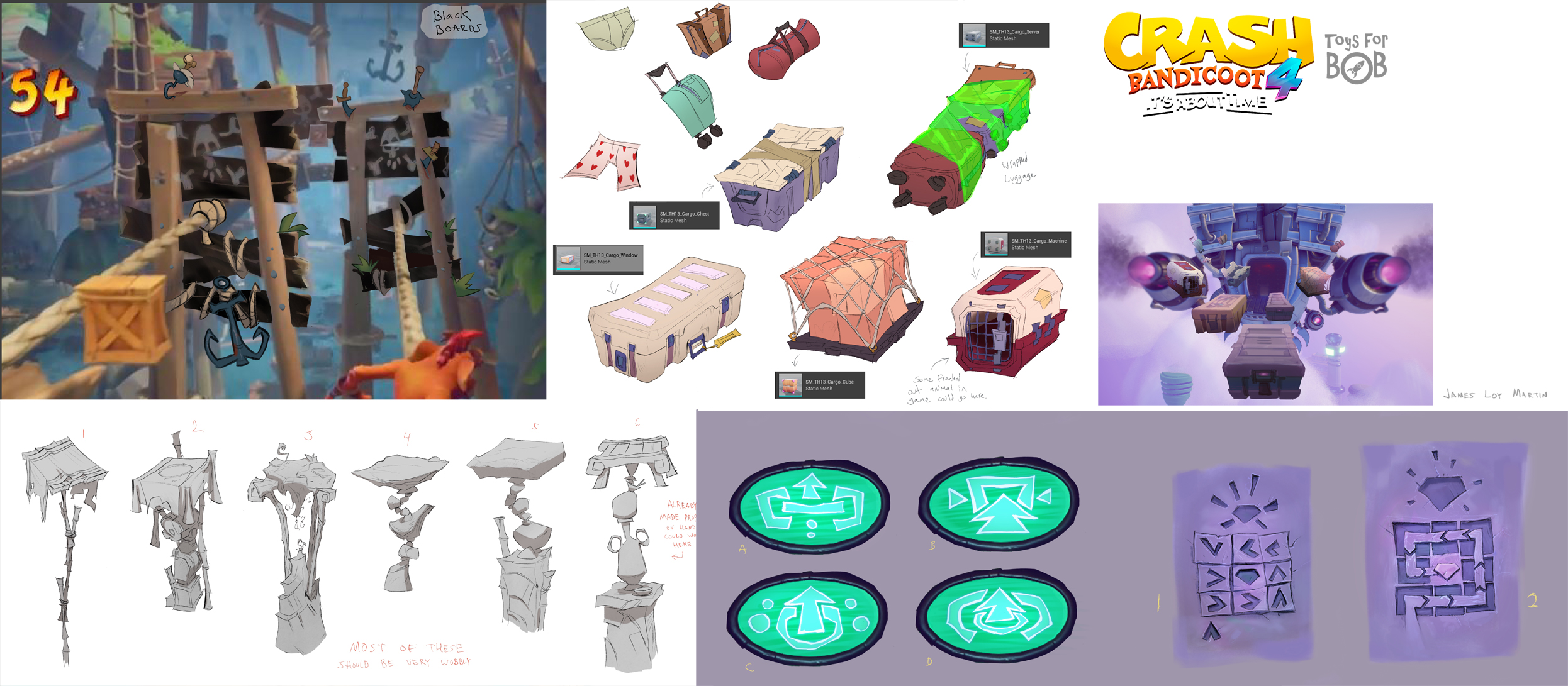 I had the enormous privilege to be a core member of the art team for Crash Bandicoot 4: It’s About Time. I was largely responsible for the the game’s overall wonky style and was able to take part in design across multiple areas including concepting characters, environments, gameplay and entire levels and themes.