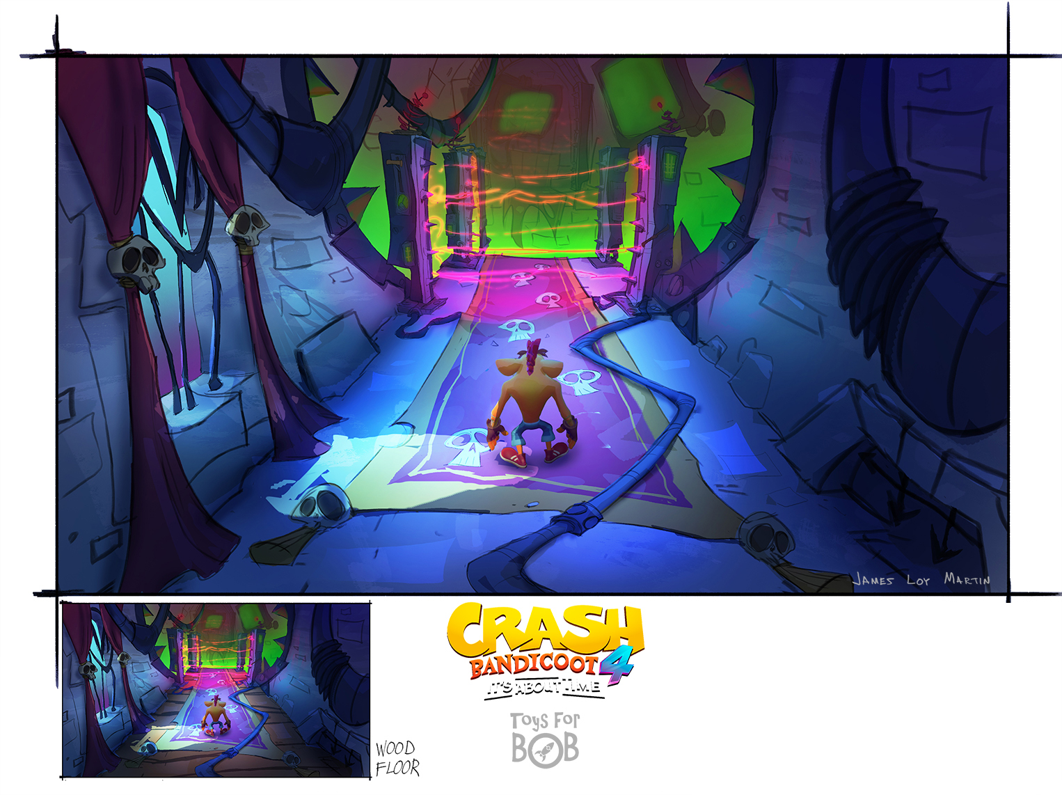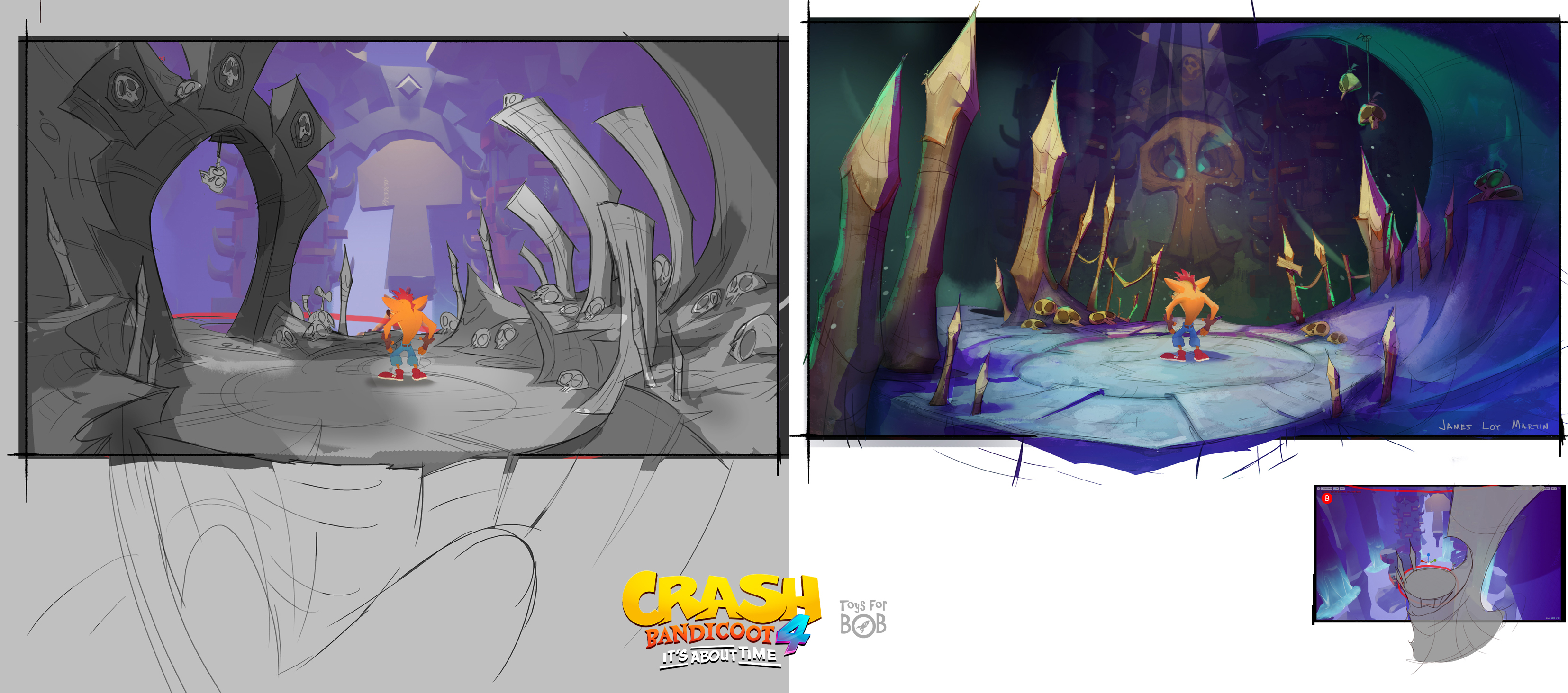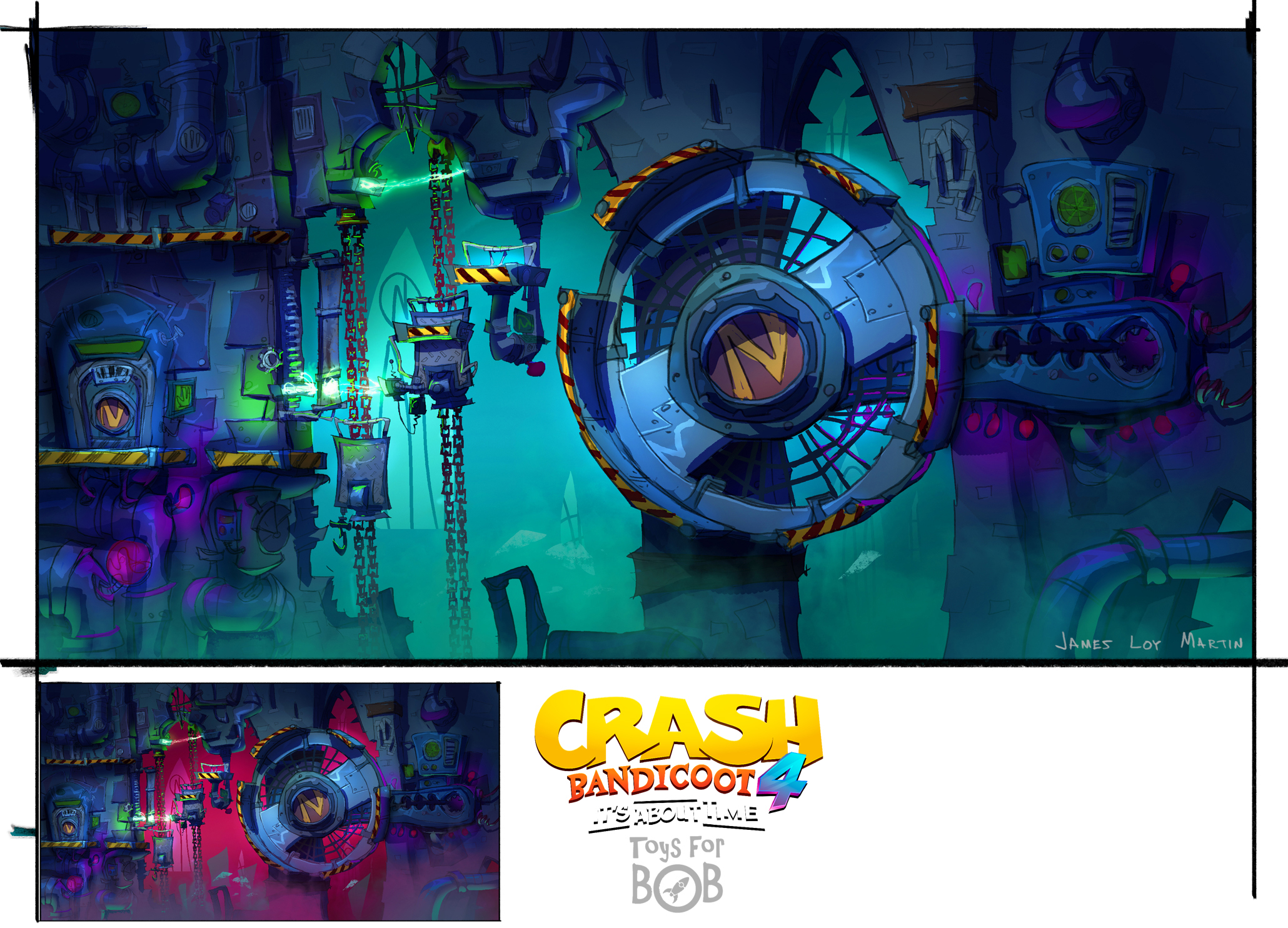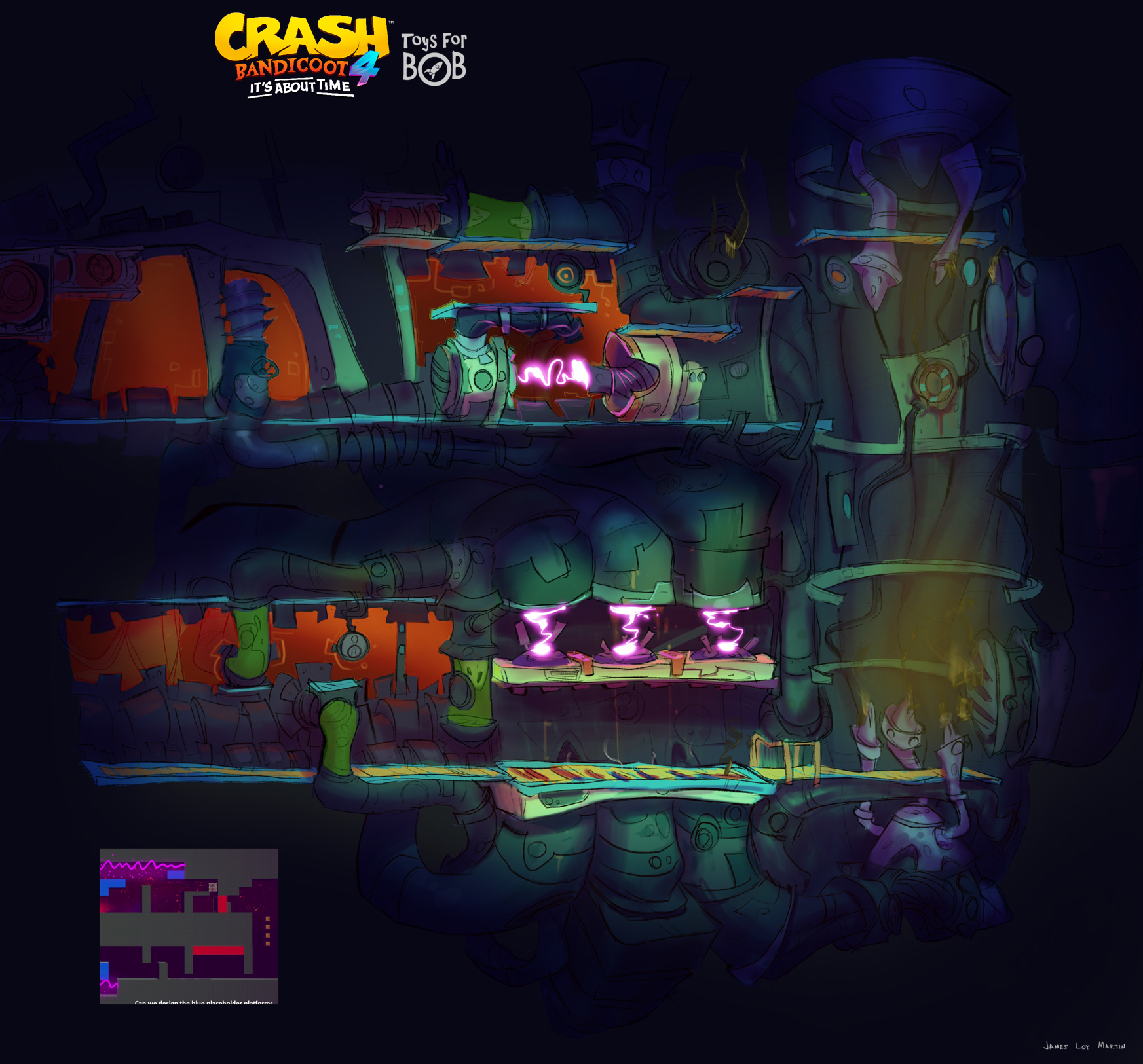 I had the enormous privilege to be a core member of the art team for Crash Bandicoot 4: It’s About Time. I was largely responsible for the the game’s overall wonky style and was able to take part in design across multiple areas including concepting characters, environments, gameplay and entire levels and themes.