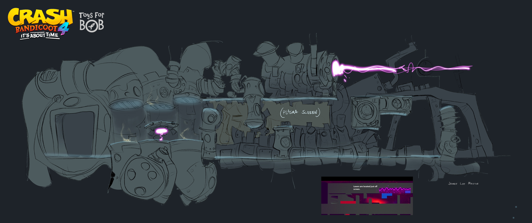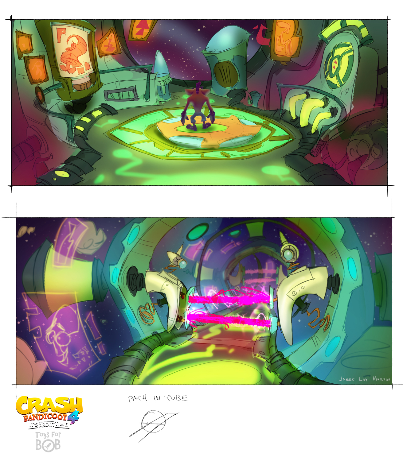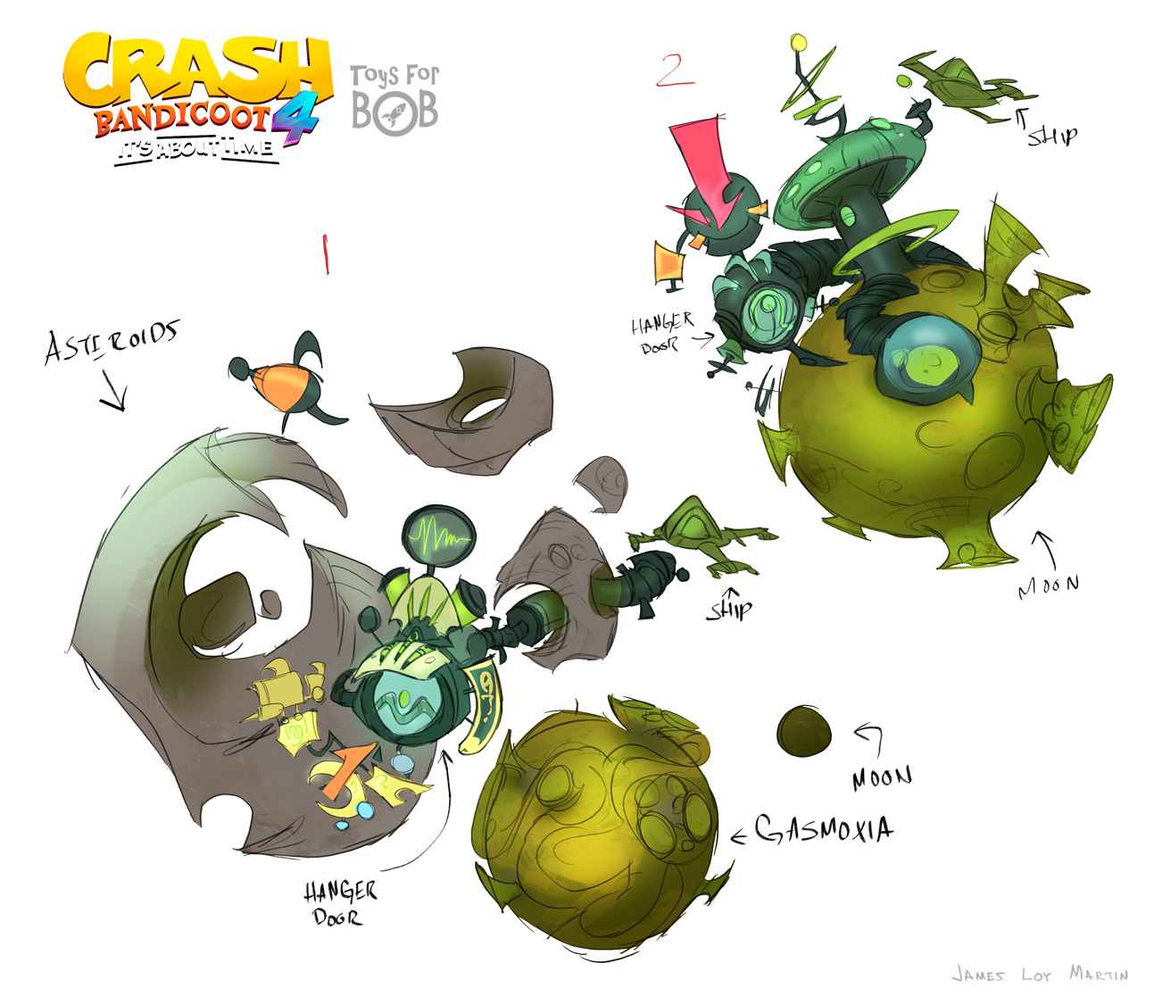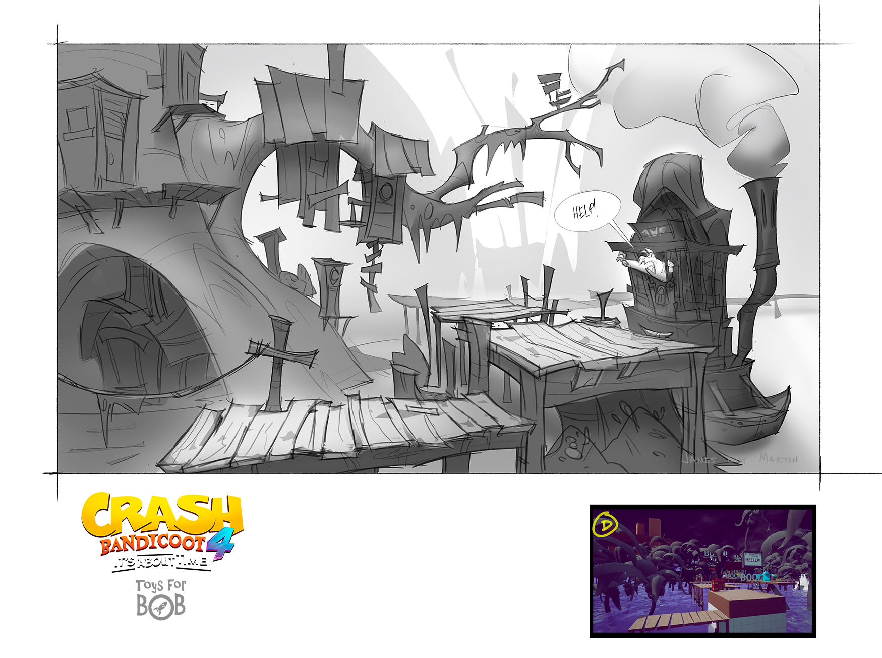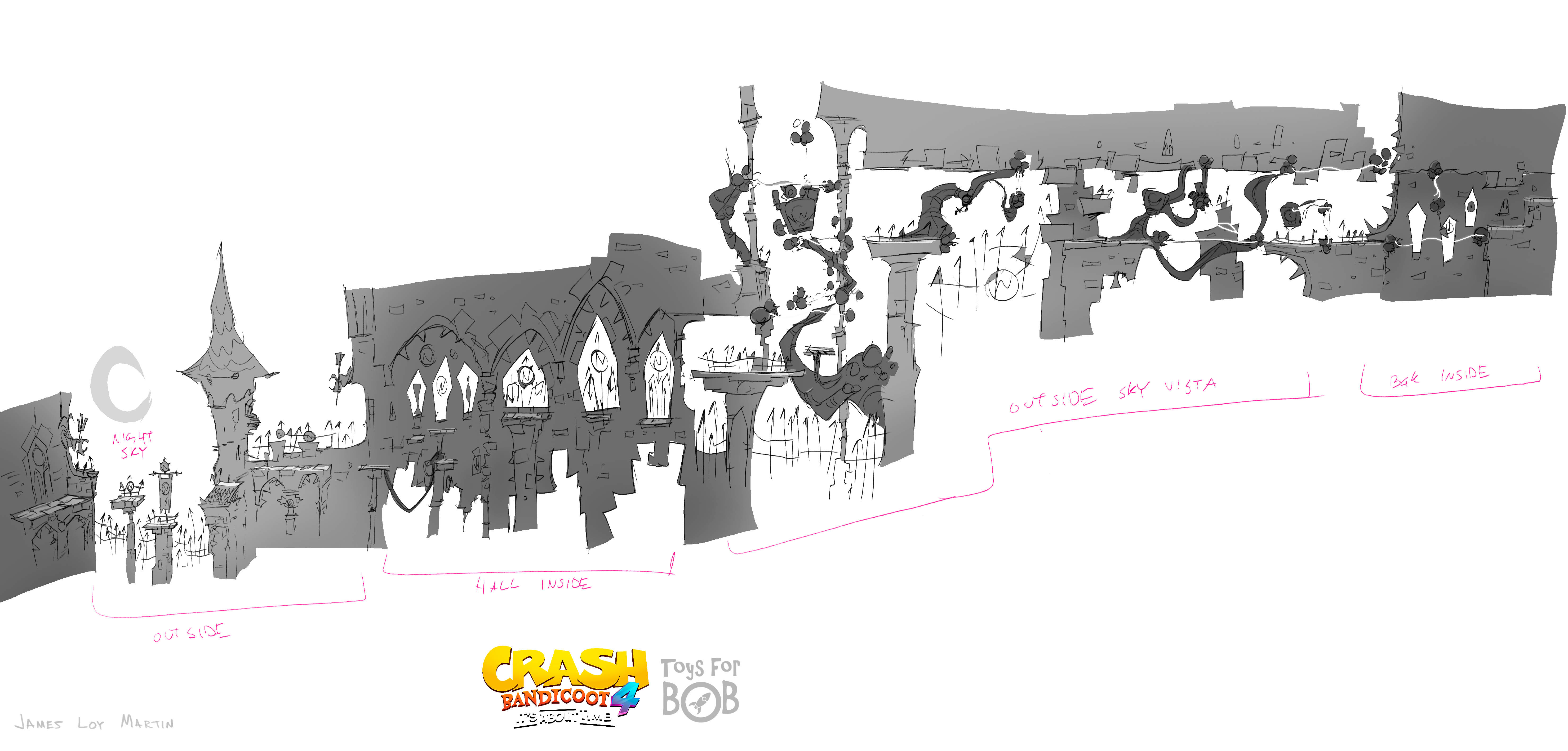 I had the enormous privilege to be a core member of the art team for Crash Bandicoot 4: It’s About Time. I was largely responsible for the the game’s overall wonky style and was able to take part in design across multiple areas including concepting characters, environments, gameplay and entire levels and themes.